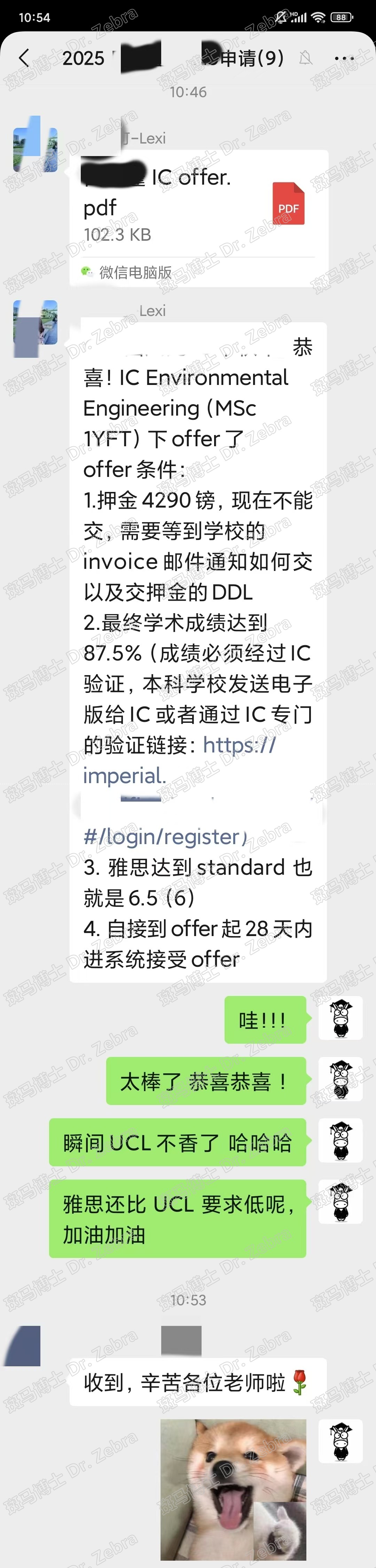 恭喜斑马博士客户双非无雅逆袭IC,19天神速收offer!逆袭的IC专业是MSc Environmental Engineering 环境工程硕士!