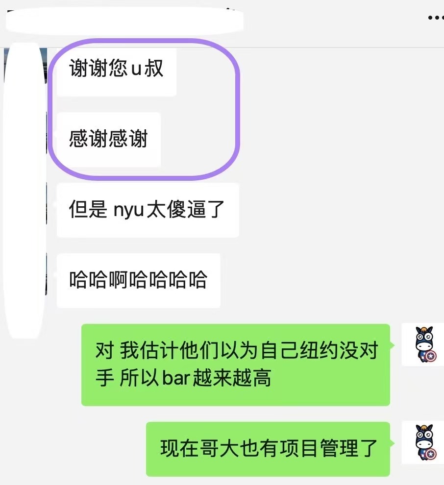 这个申请真的跌宕起伏 -- 在拿到哥大面邀的前两天,NYU Project Management#发了拒信,非常丧,#没想到没多久哥大来了面邀 ,U叔鼓励这位Mentee -- #哥大没有力气面试所有人,只有shortlisted candidate才会拿到面邀,面试时间紧迫,我们帮学生安排了#明星面试导师(NYU+华尔街工作背书)辅导,面完没几天就下Offer了!